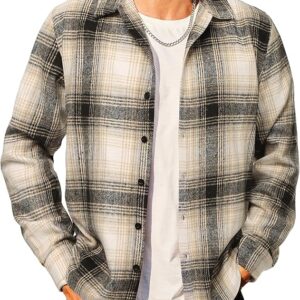 Men's Flannel Shirts Casual Button Down Plaid Shirt Jacket