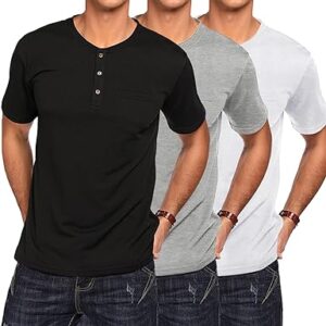 COOFANDY Men's 3 Pack Henley Shirts Short Sleeve Casual Basic Tees