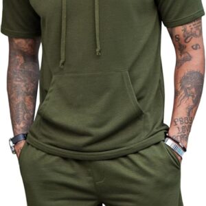 COOFANDY Men's Tracksuit 2 Piece Hooded Athletic Sweatsuit Short