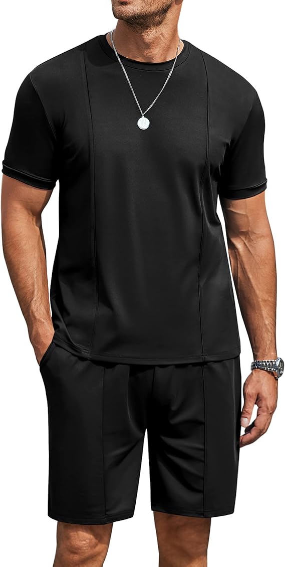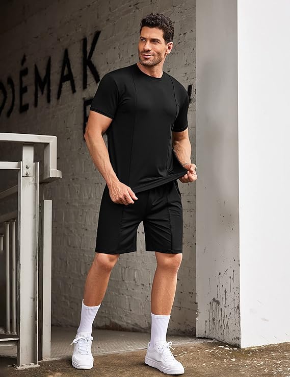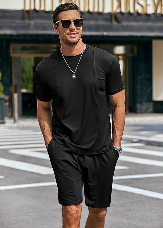 Matching Shirt and Shorts Set for Men: The matching tracksuit set can wear together, likewise can wear independently. For a style easygoing look, mathcing round neck tee shirt with pants or chinos, matching shorts with polo shirts or shirts; For a sportwear look, can wear together or coordinating with tank tops.