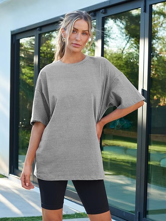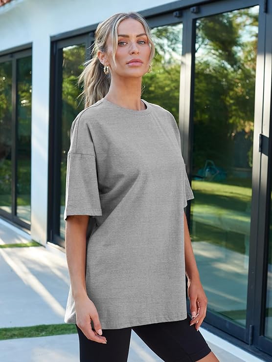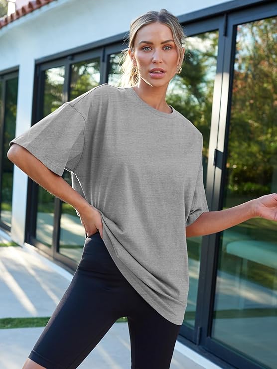 • Design:Short sleeve shirts,round neck,loose fit tops,oversized easygoing blouse,solid variety never out of style,easy to coordinate with each style.
