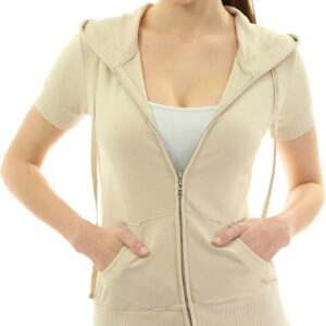 Women Cotton Blend Hoodie Zip Up Kangaroo Pocket Short