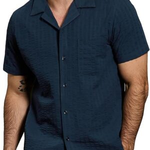 VATPAVE Mens Summer Cuban Collar Shirts Short Sleeve Button Down