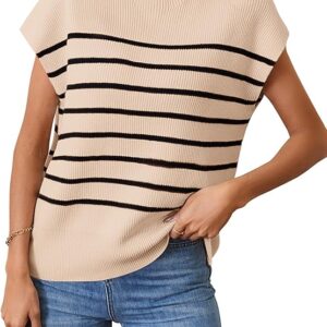 Women's 2024 Sleeveless Mock Neck Striped Sweater Vest Cap