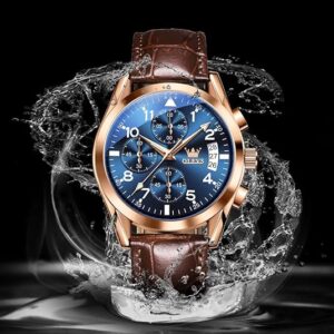 Watches for Men Brown Leather Gold Case Analog Quartz Fashion Business Dress Watch